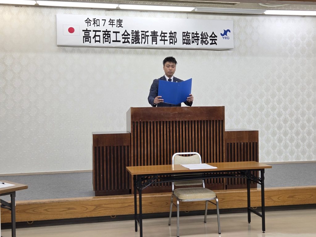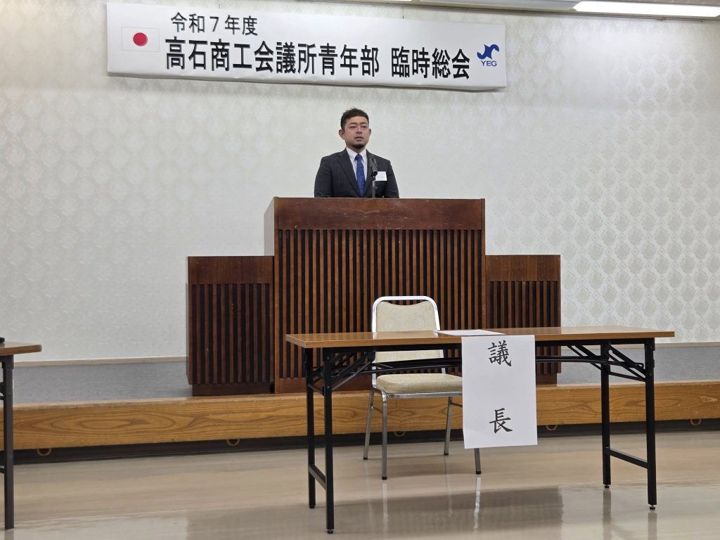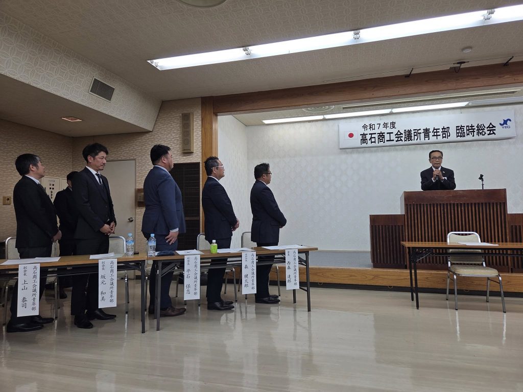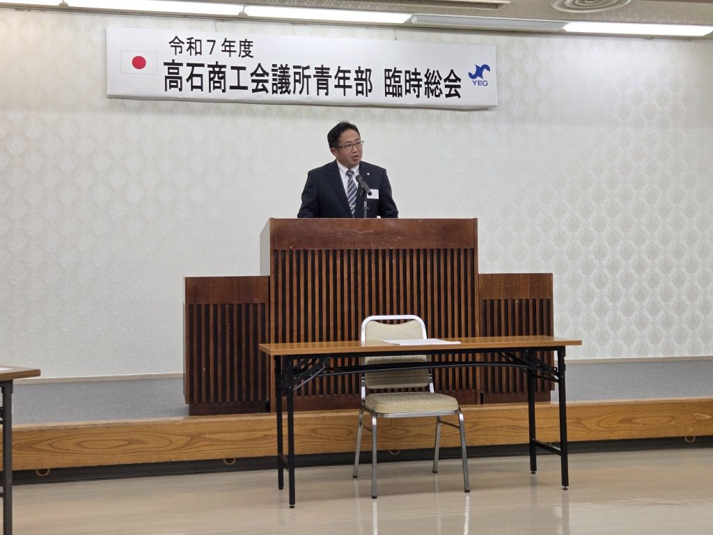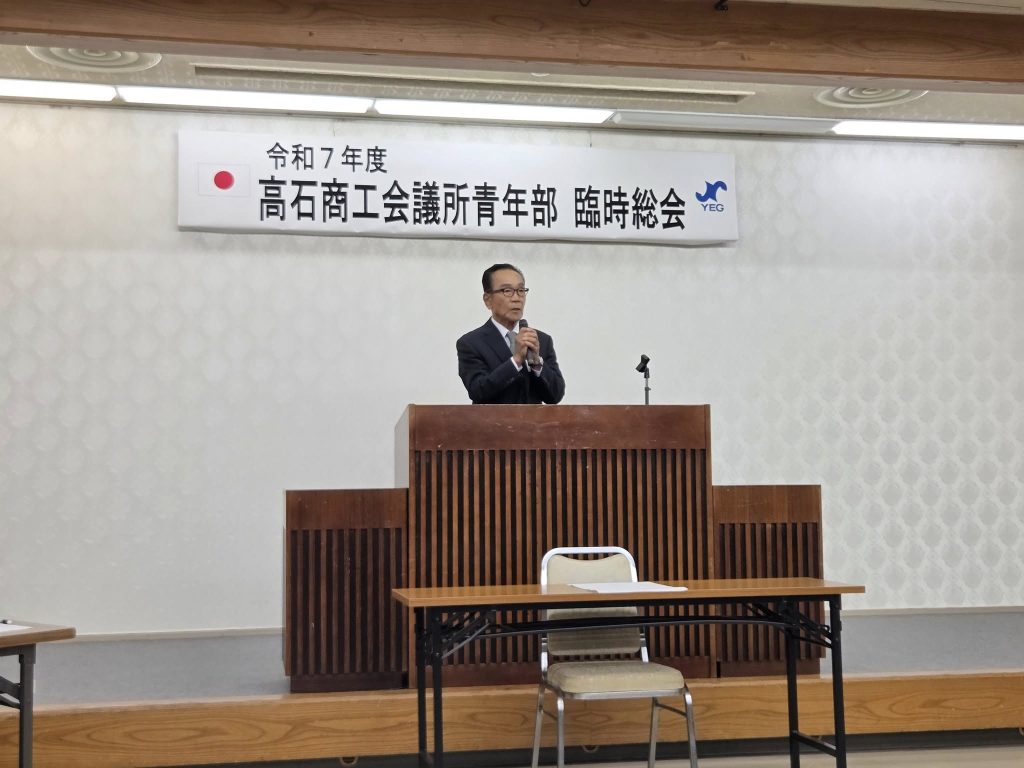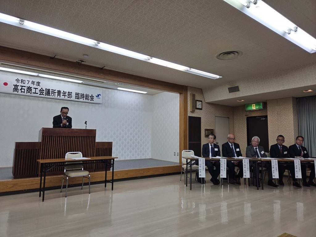 高石商工会議所青年部臨時総会を開催しました。来賓に正副会頭・専務理事をお招きし、シニア会からも多数のご参加をいただきました。
